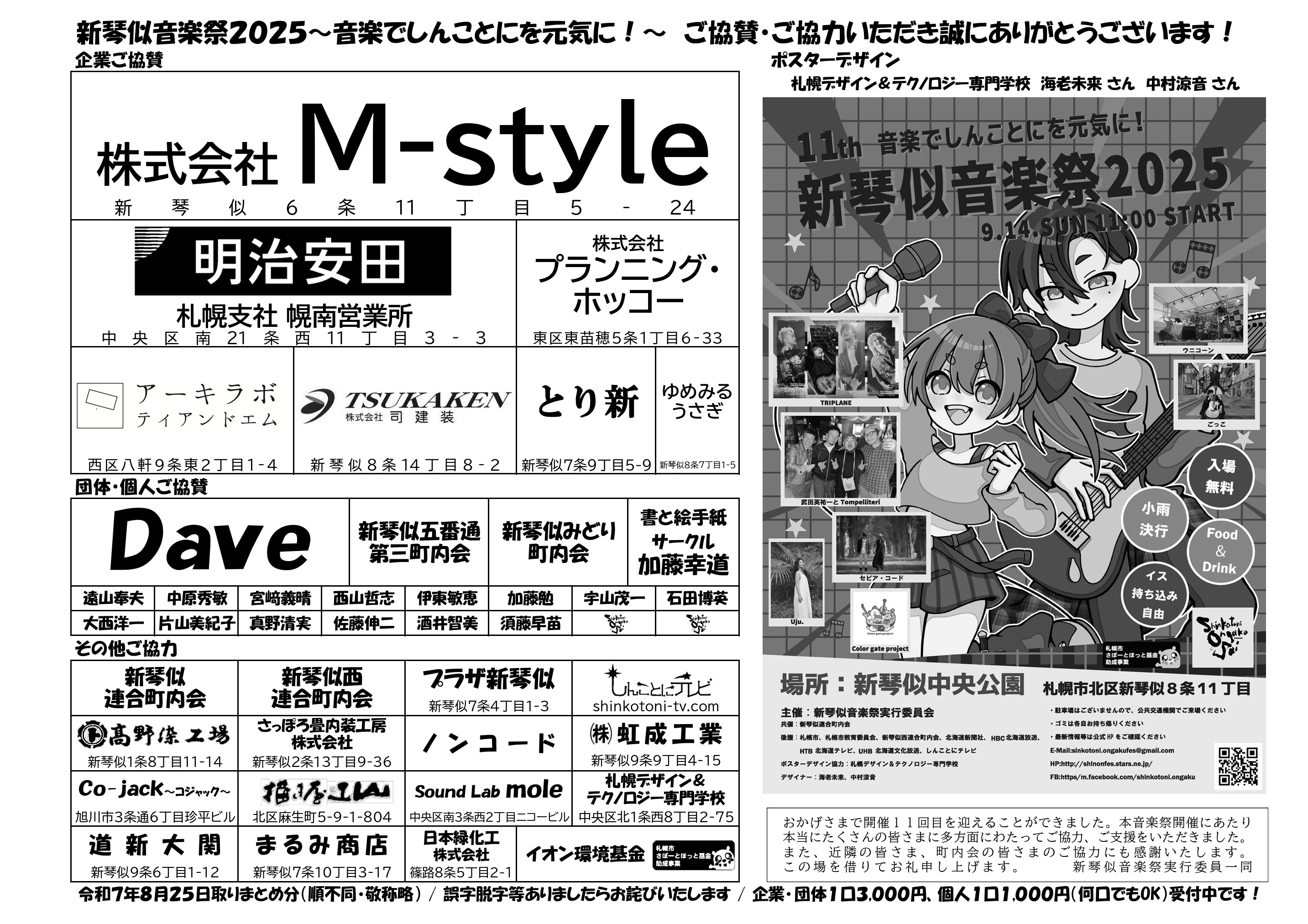 本日開催を予定しておりました「新琴似音楽祭2025」は、強風のため来場者および出演者の安全を最優先に考慮し、中止とさせていただくこととなりました。